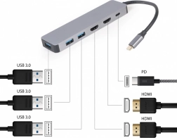 Adapter USB-C Hub USB-C PD HDMI x2 USB 3.0x3