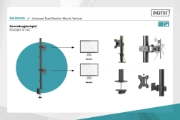 Bordbeslaget er ideelt til arbejdsmiljøer, hvor ergonomisk placering af skærme er nødvendig. Det muliggør nem justering af højden og positionen for to skærme over hinanden. Kompatibelt med skærme op til 32 tommer i diagonal og op til 8 kg.