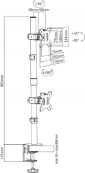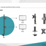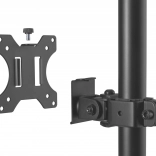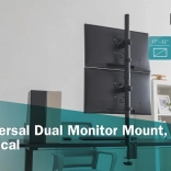 Universelt bordbeslag gør det muligt at montere to skærme vertikalt over hinanden, velegnet til skærme op til 32 tommer og en maksimal vægt på 8 kg.