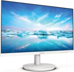 Elegant hvid Philips-monitor med en skærmstørrelse på 23,8" og IPS-teknologi, der tilbyder brede betragtningsvinkler, naturlige farver og nem tilslutning via HDMI. Takket være de indbyggede højttalere kan du undvære eksterne speakers, og de smalle kanter sparer plads på skrivebordet og giver en visuelt større skærm.