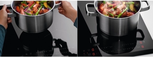 Kogepladen kommunikerer trådløst med en kompatibel emhætte og justerer automatisk dens sugestyrke og belysning efter intensiteten af madlavningen. Anbefalet emhætte: LFG716R H2H.