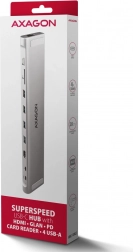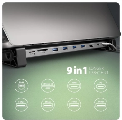 AXAGON HMC-10HLS LONGER leverer en universal 9-i-1 dockingløsning til moderne enheder med USB-C. Tilslut en skærm i op til 4K/60 Hz, fire USB-periferienheder, kablet netværk via GLAN, og brug SD/microSD-kortlæseren til hurtig dataoverførsel. Porten USB-C PD 100 W forsyner og oplader din bærbare, så du ikke mister en port.