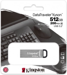 Stilfuldt og hurtigt USB-flashdrev Kingston DataTraveler Kyson tilbyder en kapacitet på 512 GB og et USB 3.2 Gen 1-interface for hurtig dataoverførsel med hastigheder på læsning op til 200 MB/s og skrivning op til 60 MB/s. Det robuste kabinet i metal uden hætte eliminerer risikoen for at miste en hætte, den praktiske løkke gør det nemt at bære, og naturligvis får du KINGSTON pålidelighed understøttet af 5 års garanti.