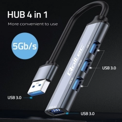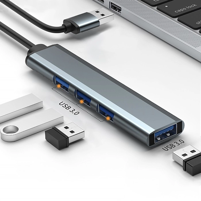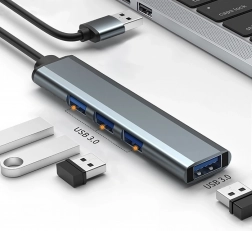 Den praktiske USB-hub udvider din enhed med 4 fuldgyldige USB 3.0-porte til samtidig tilslutning af periferiudstyr som mus, tastatur, printer, USB-nøgle eller eksternt drev. Med hastighed op til 5 Gb/s klarer du backup, kopiering og synkronisering uden unødig ventetid.