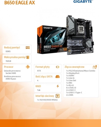 Byg en kraftig PC med Gigabyte B650 Eagle AX, der er klar til AMD Ryzen 7000 processorer i AM5 soklen. Den stærke 12+2+2 digitale VRM sikrer stabilitet ved krævende opgaver og overclocking, mens fire DDR5 slots med EXPO/XMP understøttelse lader dig udnytte moderne hukommelse fuldt ud.