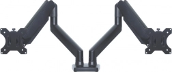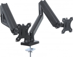 Den dobbelte skærmholder ART UM-116 er designet til skærme med en diagonal på 13 til 32 tommer og en vægt fra 2 til 9 kg. Takket være gasfjederen kan du justere skærmenes position nemt med én finger, mens holderen forbliver stabilt på plads, selv ved rotation af skærmen via PIVOT-funktionen med mulighed for 360 graders rotation.