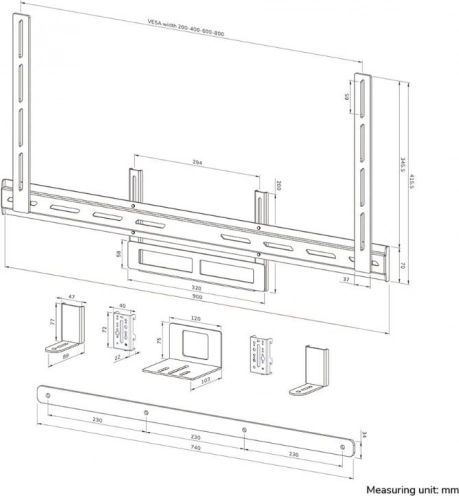 VESA-rammen kan justeres i både bredde og højde i intervallerne 200/400/600/800 og passer dermed nemt til forskellige skærmstørrelser.