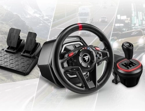 T128 Shifter Pack er designet til spillere, der ønsker en autentisk racingsimulationsoplevelse. Sættet indeholder et højergonomisk rat med realistisk Force Feedback og en gearstang, der giver følelsen af manuel gearskift, ideel til alle typer racing- og simuleringsspil.