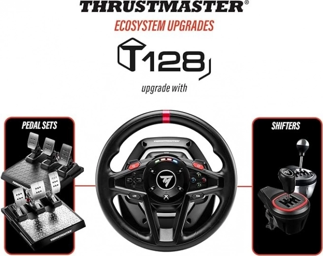 Rattet T128 er udstyret med HYBRID DRIVE-systemet, som takket være en rem- og tandhjulsbaseret mekanisme leverer mere realistisk og alsidig kraftfeedback. En 20 % højere ydelse sammenlignet med tidligere Thrustmaster TMX-hybridrat giver dig autentiske følelser og gør det nemmere at optimere din racinglinje. Den nyeste LED-stribe med 4 farver lader dig følge motoromdrejninger og se, hvornår du skal skifte gear. Monteringssystemet med justerbar klemme gør det hurtigt og enkelt at fastgøre på borde og skriveborde i forskellige tykkelser. T2PM-pedalsættet, som leveres med rattet, er udstyret med patentbeskyttet friktionsfri magnetisk sensorteknologi, der sikrer langvarig høj præcision.