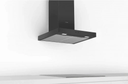 Vægmonteret model i sort, der passer perfekt til moderne køkkener og pålideligt fjerner lugte og damp under madlavning.