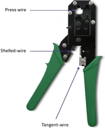 Ergonomiske, skridsikre håndtag reducerer håndtræthed, og skraldemekanismen sikrer ensartet tryk helt til fuld presning. Et ideelt valg til montage og service af RJ45 (8P8C), RJ12/RJ11 i både hjemmenet og professionelle netværk.