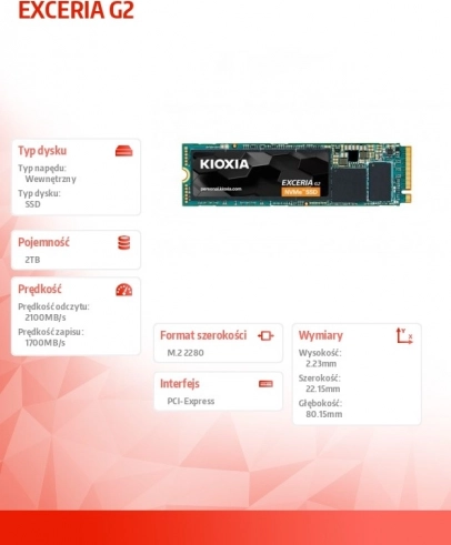 Kioxia Exceria G2 SSD giver mulighed for modernisering med høj ydeevne til en overkommelig pris. Glem forsinkelserne sammenlignet med SATA-drev, og nyd hurtig applikationsdrift. Takket være den kompakte, enkeltsidede konstruktion installerer du det nemt direkte på bundkortet uden unødvendige kabler.