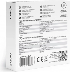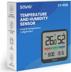 Hold det ideelle klima både hjemme og på arbejde. SAVIO CT-01 måler præcist temperatur og relativ luftfugtighed og viser også tid og dato på det store LCD. Den intuitive komfortindikator viser hurtigt, om miljøet er tørt, komfortabelt eller for fugtigt.