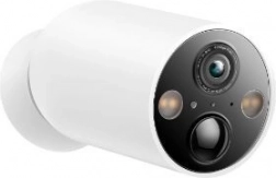 Trådløst smart kamera til overvågning med opløsning 2K QHD (2560 × 1440), lang batterilevetid takket være 10.000 mAh batteri op til 300 dage, farvenatsyn med spotlights og Starlight-sensor, bred synsvinkel på 150°, AI-detektion af personer, dyr og køretøjer, IP66 til udendørs brug og nem installation på magnetisk beslag med mulighed for strøm fra solpanel TAPO A200.