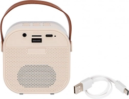 Let højttaler med brun læderrem gør det nemt at transportere og er ideel til brug hjemme og på farten.