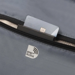 Tasken er udstyret med en skjult lomme til GPS-tracker, så du altid kan holde styr på den. En RFID-blokerende lomme beskytter dine personlige data mod uautoriseret adgang. Vigtige dokumenter kan opbevares i den bageste dokumentlomme, og den polstrede skulderrem sikrer komfort under bæring. En praktisk rem gør det nemt at fastgøre tasken til kufferten.