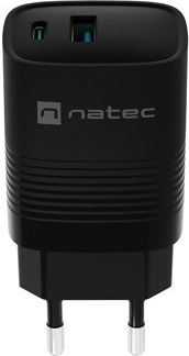 Natec Ribera GaN USB oplader 30W, 1x USB-A, 1x USB-C, sort