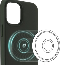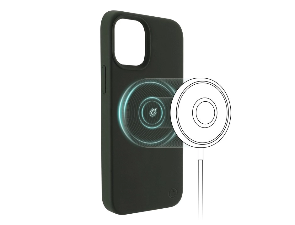 Det magnetiske etui "MagCase" er specialdesignet til iPhone 13 Pro. Den integrerede magnetiske ring er kompatibel med MagSafe-teknologi til hurtig trådløs opladning. Etuiet i mørkegrøn har en blød indvendig foring, som beskytter din smartphone.