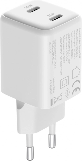 Kompakt og kraftfuld VOLT GaN-oplader med dobbelt USB-C-udgang og en maksimal effekt på 35W. Giver hurtig og sikker opladning til en bred vifte af mobile enheder, herunder telefoner, tablets og anden elektronik.