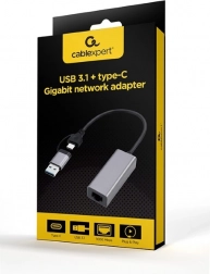 Praktisk adapter til netværksforbindelse med Gigabit Ethernet 10/100/1000 Mb/s, kombineret USB‑A/USB‑C-stik og robust metalhus. Takket være USB 3.1 tilbyder den høj båndbredde og fungerer med Plug & Play uden unødig installation.