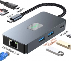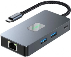 Multiportsadapter HUB USB C 7 i 1 udvider din laptops muligheder uden behov for softwareinstallation. Gør det muligt at tilslutte smartphones, projektorer, tablets, mus, tastaturer og andet udstyr. Du kan samtidig oplade din hovedenhed via USB C-porten.