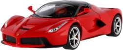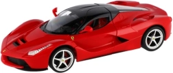 Den detaljerede replika af FERRARI LaFerrari i rød med sorte accenter imponerer med præcis udførelse og åbningsbare døre, som fremhæver modellens realistiske udseende.