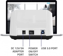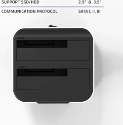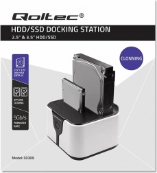 Vores stationære dock tilbyder mulighed for at tilslutte to diske (SSD eller HDD) samtidigt og understøtter størrelserne 2,5'' og 3,5''. Takket være gummifødder er enheden stabil. Installationen er nem med Plug & Play, så der kræves ingen særlige tekniske færdigheder.