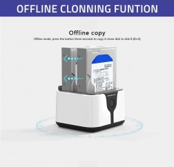 Docken tilbyder automatiseret datakloning enten via USB eller i offline-tilstand. Sæt blot diskene i de relevante porte, tænd for strømmen, og start kloningsprocessen med ét tryk på COPY-knappen.