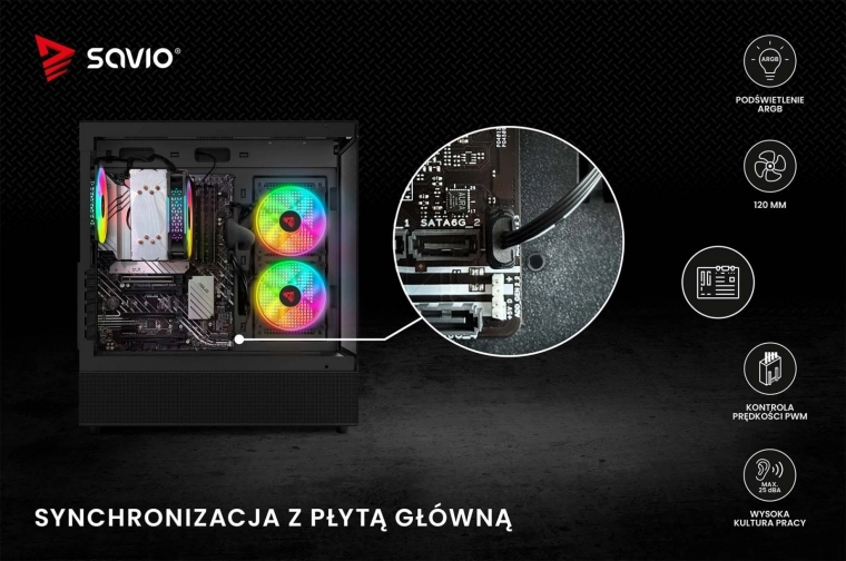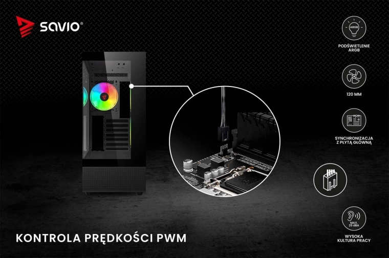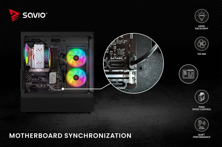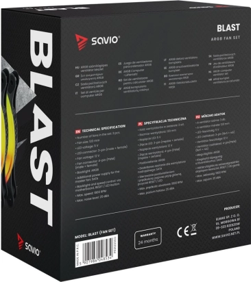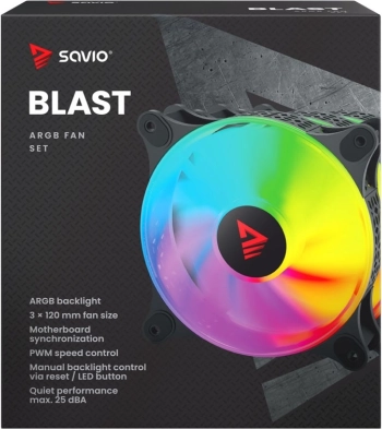 Ventilator Savio BLAST 120 mm ARGB bringer den perfekte kombination af funktionalitet og stil til din PC. Takket være ni integrerede ARGB LED-dioder kan du skabe imponerende lyseffekter, som du kan tilpasse efter humør eller designet på din opbygning.