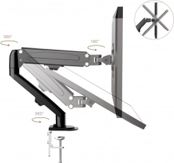 Praktiske kabelorganisatorer fører ledningerne pænt langs armen, så der ikke opstår rod på bordet, og arbejdsfladen fremstår ren. Beslaget er kompatibelt med VESA 75x75 og 100x100 og understøtter et bredt udvalg af skærm- og TV-mærker som SONY, LG, SAMSUNG, PHILIPS, SHARP, PANASONIC, TOSHIBA, GRUNDIG, PIONEER, JVC, BENQ, SANYO, NEC, HYUNDAI, HITACHI, Iiyama, ACER.
