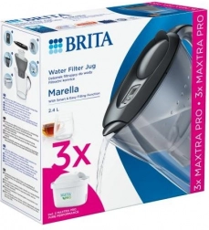 Filtreringskanden BRITA Marella med volumen 2,4 l og en pakke med 3 MAXTRA PRO Pure Performance-filtre sikrer hver dag friskt, velsmagende og sikkert filtreret vand. Nyd bedre smag af drikke og mad, mindre kalk i kande og kaffemaskine samt praktisk påfyldning med én hånd med filterpåmindelsen BRITA Memo.