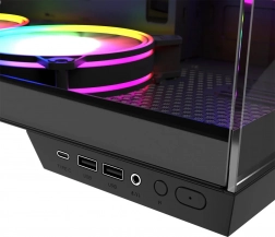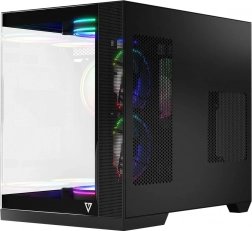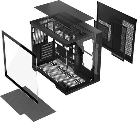 VOLCANO Panorama er et solidt udført computerkabinet med panoramisk kig til komponenterne – front- og sidepanel i hærdet glas fremhæver grafik, RAM og køler. Den tokammer‑opdelte indretning med vertikal PSU adskiller serviceringen fra hovedrummet og sikrer ryddelig kabelføring og en flot præsentation af systemet. Med understøttelse af bundkort med omvendte tilslutninger er du klar til moderne trends og fremtidige opgraderinger.