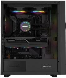 Byg en kraftfuld og stille computer uden kompromiser. GENESIS Diaxid 605 ARGB leveres med fire stille OXAL 120 ARGB-blæsere (3× foran, 1× bagtil) for afbalanceret luftstrøm og positivt tryk i kabinettet. Takket være den fine mesh-front og fuld filtrering forbliver interiøret rent og temperaturerne lave.