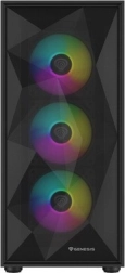 - 4× 120 mm GENESIS OXAL ARGB (3× front, 1× bagtil)