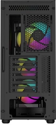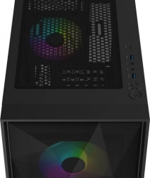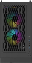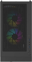 Tre forreste intake og én bageste exhaust sikrer positivt tryk og gode temperaturer selv under belastning. ARGB-belysningen kan synkroniseres via bundkortet.