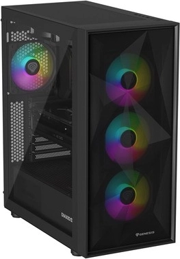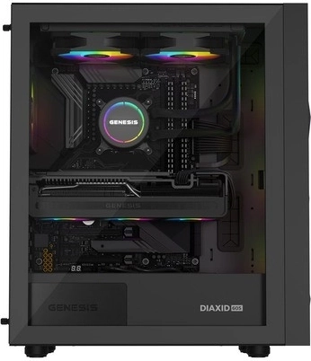 Stilfuldt og robust PC-kabinet til krævende builds: GENESIS Diaxid 605 ARGB tilbyder fremragende køling, op til 4 forinstallerede ARGB-blæsere, AIO-understøttelse op til 420 mm, USB‑C på topanel og fuld støvbeskyttelse med magnetiske filtre og fin mesh-front.