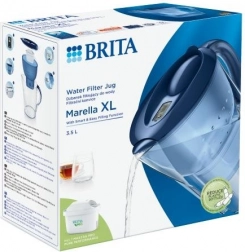 BRITA Marella XL-kanden tilbyder 3,5 l samlet volumen og op til 2,0 l filtreret vand pr. påfyldning. Takket være det opklappelige låg kan den fyldes med én hånd, beholderen kan vaskes i opvaskemaskine (undtagen låget med elektronik), og dimensionerne passer i køleskabsdøren. Den elektroniske BRITA Memo-indikator minder om filterudskiftning hver 4. uge.
