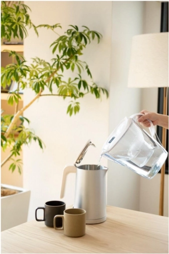 BRITA Marella XL er en praktisk filtreringskande til hele familien. Den tilbyder generøs kapacitet til dagligt væskeindtag, bekvem påfyldning takket være låget med vippeklap og mulighed for opvask i opvaskemaskine (undtagen låget med elektronisk indikator). Med hver slurk får du friskfiltreret vand uden uønsket smag og lugt, som også er ideelt til kaffe, te og madlavning.