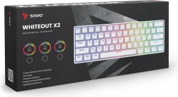 Kompakt 60% mekanisk tastatur SAVIO Whiteout X2 med brune OUTEMU Brown-kontakter tilbyder hot‑swap for nem udskiftning af switche, fuld N‑key rollover og anti‑ghosting for fejlfri registrering af tastetryk samt RGB‑bagbelysning for et personligt look. Ideelt til både gaming og produktivitet på et minimalistisk skrivebord.
