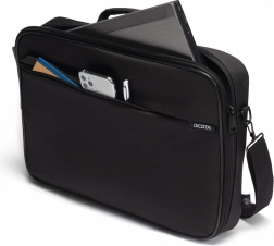 Fastgørelsesremmen sikrer stabil placering af din bærbare. Den praktiske forlomme tilbyder god plads til mobilt tilbehør som smartphone, visitkort og penne. Den justerbare og aftagelige skulderrem sammen med et behageligt greb gør tasken let at bære.