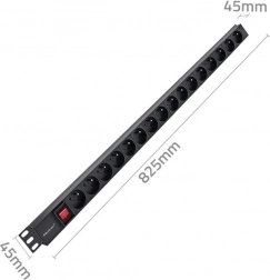 Valg af den rette PDU-skinne bør omfatte funktionalitet, materialekvalitet og tilgængelige funktioner som en bagbelyst afbryder for nem lokalisering af strøm. Denne skinne er ideel til 19" rackskabe, leverer 16 udtag af typen FRENCH og har en konstruktion i højkvalitets aluminium i sort, mens udtagene er lavet af robust ABS-plast. Denne konstruktion sikrer modstandsdygtighed over for mekaniske skader og intensiv brug. Særlige beslag på begge sider muliggør nem montering. Udtagene er arrangeret i en vinkel på 35 grader, hvilket letter kabelmanagement og optimerer udnyttelsen af pladsen i serverskabet.