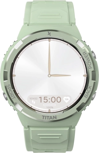 Det smarte dameur Titan Valkiria kommer i en mintgrøn farve, som giver din stil friskhed og raffinement. Denne avancerede model tilbyder brugerne: