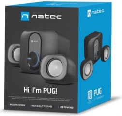 Natec PUG-højttalerne kræver ingen drivere eller strømforsyninger og fungerer straks efter tilslutning til USB og 3,5 mm jack. Lydstyrken er let tilgængelig via kontrollen på subwooferen, suppleret af belysning for bedre synlighed, selv om natten.