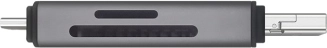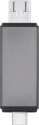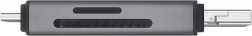 Kortlæseren er udstyret med tre typer stik: USB-C, USB-A og micro USB, hvilket gør det muligt at tilslutte til en bred vifte af enheder.