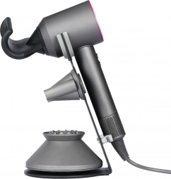 Hold din DYSON Supersonic og tilbehøret elegant organiseret. Denne metalstander med præcist formet hoved og magnetisk fastgørelse giver en stabil base til sikker afsætning og hurtig brug. Silicone-elementer beskytter både hårtørrerens og standerens overflader.