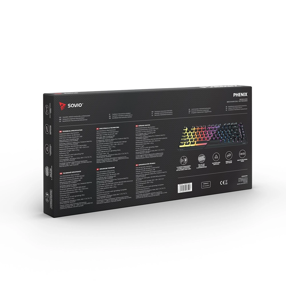 Phenix-tastaturet fra Savio er udstyret med fuld N-key rollover og anti-ghosting. Det betyder, at hver samtidig tastning af flere taster registreres korrekt, hvilket er vigtigt for gamere under intense spilsessioner.