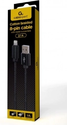 Holdbart USB‑A til Lightning-kabel på 1,8 m til Apple-enheder. Hurtig opladning og synkronisering, forgyldte kontakter for stabil og hurtig dataoverførsel og stilfuldt tekstilflet. Kompatibelt med Apple iPhone 5 og nyere.