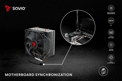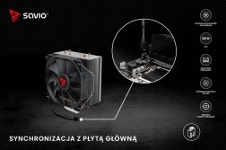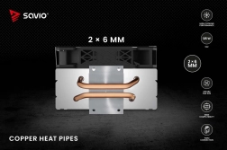 Savio Frost X2 leverer fremragende køling takket være to 6 mm kobber-heatpipes i direkte kontakt med CPU’en, som hurtigt leder varmen til aluminiumradiatoren. Kølesystemets ydeevne varetages af en 120 mm blæser med justerbare omdrejninger fra 800 til 1800 RPM, tilsluttet via et 4-polet stik med PWM-understøttelse. Denne teknologi tilpasser automatisk blæserhastigheden efter temperaturen, hvilket sikrer stille drift og energieffektivitet.