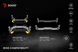 Kompatibilitet: Savio Frost X2 er kompatibel med en bred vifte af Intel-sokler (LGA 775, 1200, 1151, 1150, 1155, 1156, 1366, 1700, 1851, 2011, 2066) og AMD (AM3(+), AM2(+), FM2(+), FM1, AM4, AM5), hvilket gør den til et universelt valg til forskellige systemkonfigurationer.