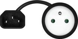 Kompakt strømadapter med stik IEC C14 og CEE 7/5 (E) er ideel, hvor der er begrænset plads bag udstyr eller i fordelerskabe. Den korte længde på 15 cm sikrer overskuelig kabelføring og minimerer unødige kabelsløjfer.